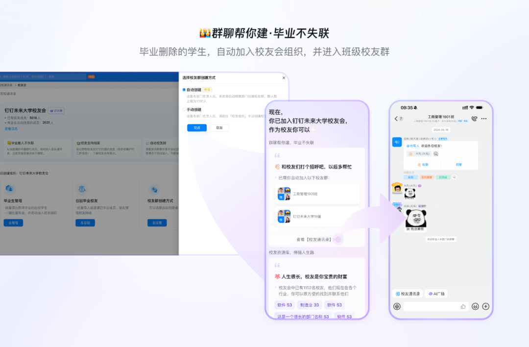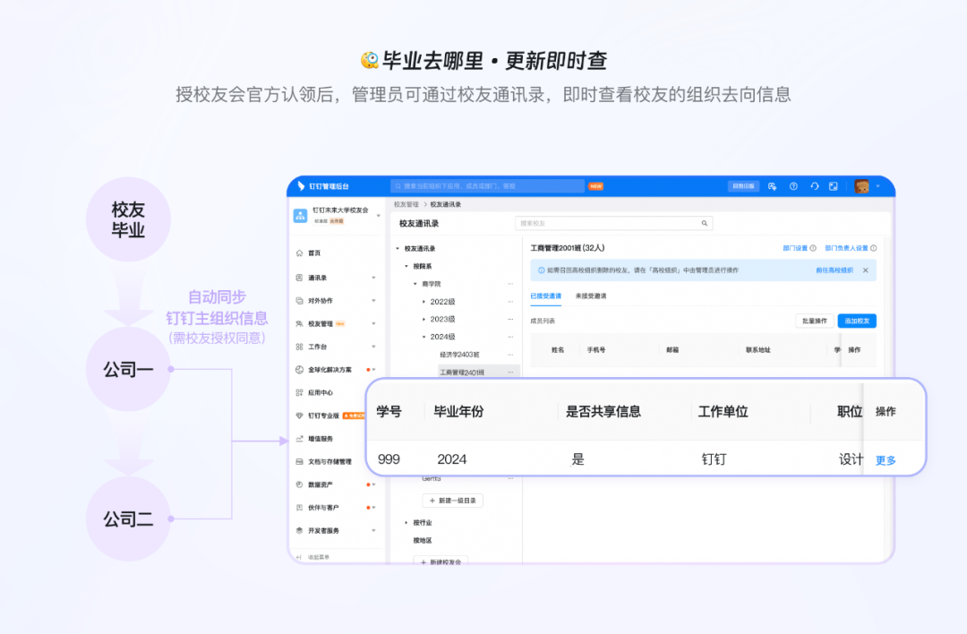 毕业季,钉钉升级了面向高校使用的校友会产品,上线全新功能。